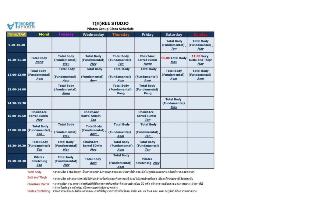 - ครูทุกท่านจบการอบรมด้านพิลาทิสจากสถาบัน Stott Pilates